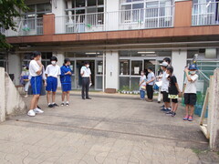 明日から長い夏休みに入ります。子供たちには「授業はなくなりますが、みんなの心と体と頭脳の成長が止まるわけではありません。夏休みにしかできない事に取り組んでください。時間はあっという間に過ぎるので、目標をもって過ごしましょう。そして、いつも本町小学校の子供であることを忘れないで生活してください。夏休みは学校でないところで生活をする時間が長くなり、家族や地域の方がみんなを見守ってくださいます。ですから、家族のため、地域のためにできることや、挨拶などを進んでやれるとよいですね。」と話しました。