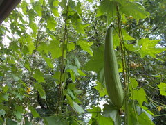 3年生が育てている「緑のカーテン」は、夏の間にぐんぐん伸びて、大きな実を付けています。2学期が始まって見るのを楽しみにしていてください。