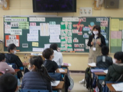 左の写真は6年生の「がん教育」の様子です。西東京市保健課から来ていただいたゲストティチャーの話を聞き、健康に過ごすためにはどうすればよいかを考えました。