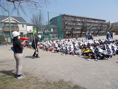 校庭でのセレモニー(6年1組)