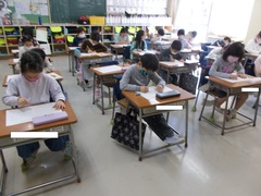 4年生の写真からは、真剣さが伝わるのではないでしょうか。体育館にいないのかと思うほど静かで、集中力を発揮していました。