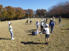 1・2年生の生活科見学でいこいの森公園へ行ってきました。生活科見学に行く前に、1・2年生のたてわり班で集まり、「はんのめあて」や「あそび」を決めたり、一緒に遊んだりして楽しく行ける準備をしてきました。当日、たてわり班でネイチャーゲームや遊び、お弁当など、2年生と仲良く交流することができました。