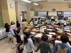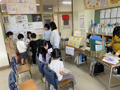 チャボのお世話をしている4年生から招待状をもらい、1組チャボフェス・2組チャボランドへ行きました。4年生のそれぞれの教室で、チャボについてアニメや、クイズ、劇などのブースに分かれて教えてもらいました。チャボへの関心や愛着が高まる楽しいイベントでした。