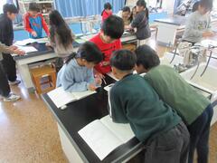 理科も観察だけでなく、実験を行うことが増えてきて、理科室を利用し始めました。理科室には、普段使っている教室にはない道具がたくさんあり、子どもたちは興味津々な様子でした。