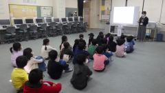 始めてパソコン室に行き、ICT講師の先生にパソコン室のきまりやパソコンの使い方を教わりました。マウスをピースの形でつかみ、ゲームをしながら楽しくクリックやドラッグの練習をしました。最後は自分でシャットダウンまでして大満足の1時間でした。