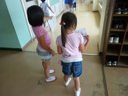 1・2年生のペアで、手をつないで、学校探検をしました。2年生が「図工室は、あっちにあるよ。」「ここは給食室だよ。」など、1年生に教えながら探検していきました。スタンプを集めながら、校内を回りました。ただスタンプを集めるだけのスタンプラリーではなく、なにをする部屋か、なにがあったかを見て回りました。