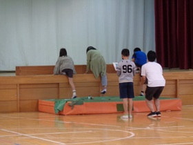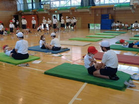 体育館では、反復横跳びや上体起しなどを計測しました。