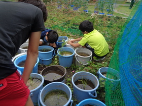 ヤゴの餌やり 3年生