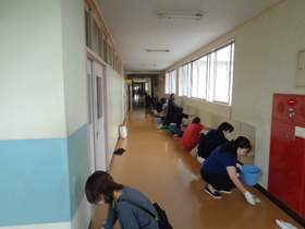 校内の壁の拭き掃除、花壇のお手入れ等を手分けして行いました。