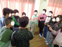写真は豆腐ハンバーグのおかわりを懸けたじゃんけんの様子です。