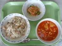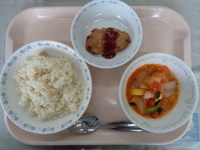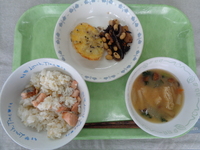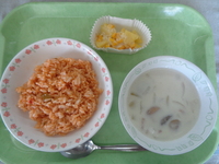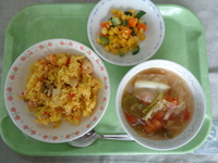 ★今日はスペイン料理の「パエリア」を出しました。食べ慣れない味でしたが、おかわりをしてくれる児童が多く、とても嬉しかったです♪