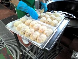 ★今日から「緑の読書旬間」です。今日は「カレーパンでやっつけよう」という本にちなんで、給食室でカレーパンを手作りしました。