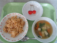 ★今日はさくらんぼが出ました!おかわりじゃんけんでどのクラスもにぎわっていました!