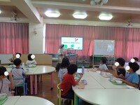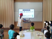 今日は、「西東京市の野菜についてのおはなし」でした。西東京市の野菜を食べるとどんないいことがあるのか、給食ではどの野菜が西東京市産なのかなどのお話を聞きました。
