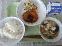 この日は、給食室でひとつひとつ手作りした『キャベツメンチカツ』でした。