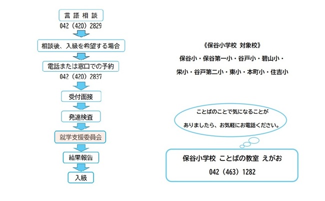 入級までの流れは「西東京市ことばの教室入室について」(こちらをクリック)もしくは