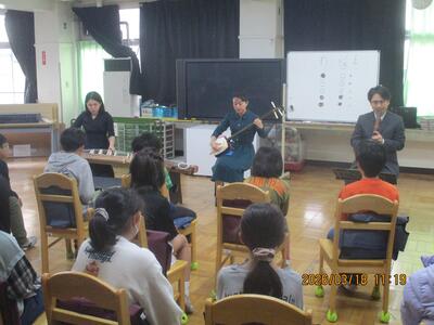 3年生の音楽の授業の様子です。今年も本校と青嵐中の卒業生の牧野さんのご指導のもと、3年生が「金管楽器体験」をすることができました。牧野さんはトランペットの演奏を続けていて、毎年、本校の子どもたちに授業をしてくださいます。子どもたちは、初めて扱う「マウスピース」に「思ったよりも重い」「音を出すのが難しい」などと言いながら、練習を始めました。でも、少しコツを教えていただくとあっという間にふけるようになる子が増え、実際にトランペットやトロンボーン、ユーホニウムを吹くことができました。この経験をもとに、音楽や楽器に興味をもってくれればうれしいです。牧野さん、ありがとうございました。