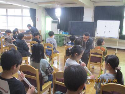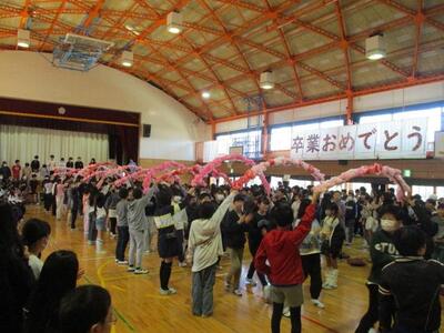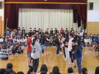 6年生の卒業関係のイベントが続いています。今週の月曜日は、「5.6年生交流会」でした。交流会の前半は5年生が6年生を楽しませるために考えてくれた遊び(ドッジボール、どろけい、室内での伝言ゲーム等)を一緒にやり、後半は6年生が考えた遊び(借り物競争)をやりました。そして、最後に、6年生が5年生に「ソーラン節」の踊り方を教え、和やかな雰囲気の中、交流会は終わりました。