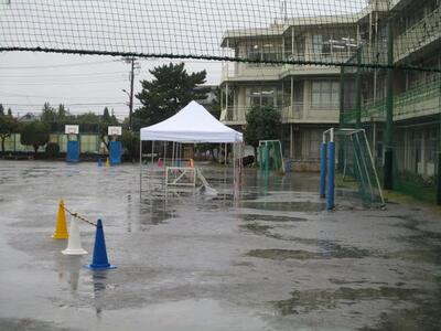 残念ながら雨になり、予定していたスポーツデーが28日(火曜日)に延期になりました。子どもたちは朝から「スポーツデーやりたかった」と残念そうに登校をしてきました。朝からしとしとと続く雨が、子どもたちの悲しい気持ちを表しているようです。