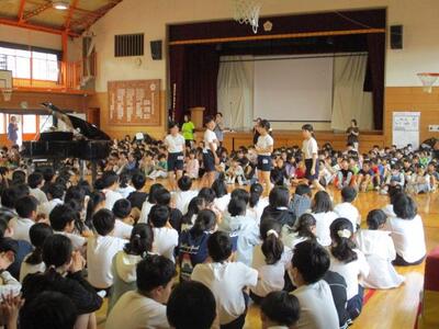 今日は、3校時に体育館で、5年生対象の音楽鑑賞教室がありました。東京なないろアンサンブルの皆さんが、クラシックや日本の唱歌、ポップスなど幅広いジャンルから様々な曲を演奏してくださいました。