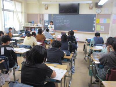 「がん教育」では、健康な体づくりに必要な条件として、食事や運動について説明を聞いたり、がんという病気について教えていただいたりしました。
