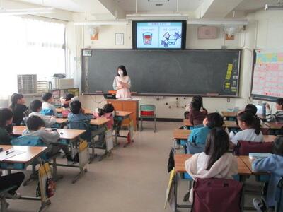 今日は3年生の授業でした。子どもたちは清涼飲料水やジュースの中にどれくらい砂糖が入っているかを知り、おやつの食べ方について考えていました。お口の中を清潔に保つためには、日常から望ましい生活習慣を身に付けることが必要です。正しい歯の磨き方を学び、自分の口の健康を守っていってほしいです。