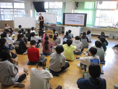 今日は、西東京市中央図書館の方に来ていただき、3年生を対象に「西東京市子ども電子図書館をつかってみよう」という出前授業をしました。電子図書館とは、インターネットでいつでも・どこでも電子書籍を借りて読むことができるサービスです。図書館に来館しなくても、パソコンやタブレット、スマートフォン等で読書を楽しむことができます。西東京市では小・中学生に「電子図書館利用カード」が配布されています。今日は、そのログインの仕方や本の検索の仕方などを教えていただき、実際にタブレット上で本を閲覧してみました。電子書籍ならではの機能で、様々な読書に対応できますので、ぜひ多くの本に触れてほしいと思います。
