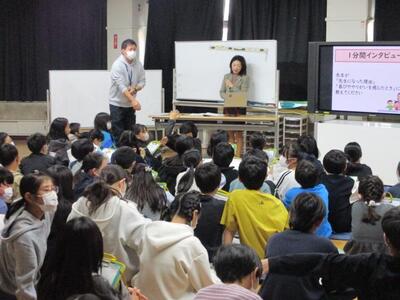 6年生のゲストティーチャーによる出張授業が続いています。月曜日は西東京市健康福祉部健康課の方による「がん教育」の授業、火曜日は社会労務士さんによる「キャリア教育」の授業でした。