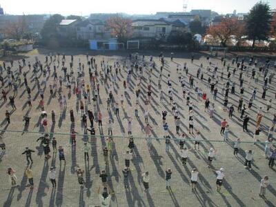 今日は体育朝会がありました。短縄を使ってリズム縄跳びをする朝会でした。全校児童が校庭に集まって縄跳びをするのは久しぶりのことで、子どもたちも集団でのリズム縄跳びを楽しみながら取り組んでいました。「ダンスホール」という曲に合わせて、準備体操から短縄を使っての運動までを朝から気持ちよく行うことができました。これから縄跳び旬間になります。この機会にぜひ縄跳びに慣れ親しんでほしいです。