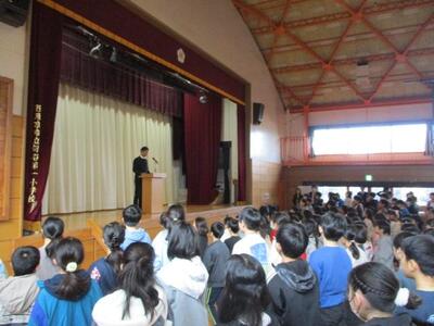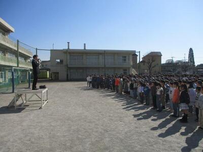 今日は、朝、体育館で2学期の終業式がありました。校長先生からは各学年が2学期に頑張ったことについてのお話をいただきました。児童代表の言葉は2年生でした。2学期の保一作品展の取組についてや友達のことについて書かれたとても素敵な作文でした。その後、歯と口の健康ポスターコンクールとラジオ体操リーダーの子たちへの表彰がありました。最後は、田無警察署の方から、冬休みの交通安全についての話がありました。自転車の乗り方、ヘルメット着用について等、子どもたちが気を付けることを丁寧に説明していただきました。