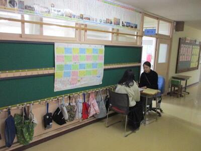 各学級では、通知表を配付していました。担任から一人ずつ丁寧に話をしながら渡している様子がみられました。