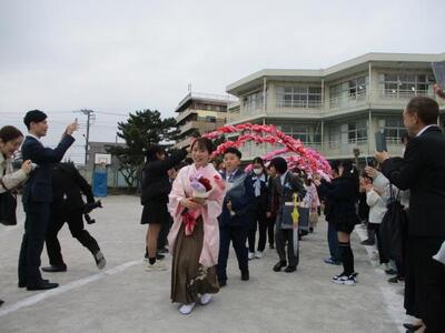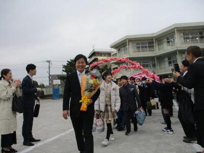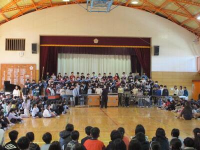 今日は6年生を送る会がありました。1〜5年生は、今までお世話になった6年生にプレゼントや出し物をして、感謝の気持ちを表しました。どの学年も6年生に喜んでもらおうと一生懸命に練習をしてきた成果を出せたと思います。そして、6年生からの出し物は、「カイト」の曲の合奏でした。強弱をつけ、迫力とやさしさを感じるとても上手な演奏は「さすが、6年生」と思わせるほどで、会場からは「アンコール」のかけ声が上がりました。最後に、6年生が5年生に委員会の引継ぎを行い、6年生は花のアーチをくぐって退場をしました。