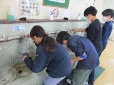 今日の6時間目は6年生が奉仕活動をしてくれました。各教室の扇風機と黒板消しクリーナーの掃除です。扇風機は各教室の高いところにあり、なかなか掃除が行き届きません。水道の水はまだまだ冷たいのに、6年生はどの子も友達と協力しながら、扇風機の部品を一つ一つ丁寧に水で洗い流し、きれいにしてくれました。本当に立派な6年生だと思います。また、黒板消しクリーナーもチョークの粉がたくさんあり、洗いにくいものでしたが、丁寧に分解して、細かい部分まで掃除をしてくれました。6年生、どうもありがとうございます。6年生がきれいにしてくれた学校のものは、これからも大切に使っていきますね。