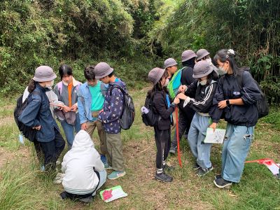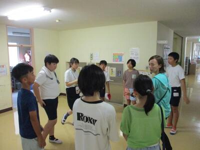地図を片手にポイントをまわり、ミッションに挑戦して高得点獲得を目指します。ペットボトルを投げて立たせる、指定された長さにテープをカットする、10秒を体感で当てるなど、係の人たちが考えたミッションに取り組みました。「130cmってこんな感じかなー?」「もう10秒経ってない?」など、班の友達と賑やかに相談していました。
