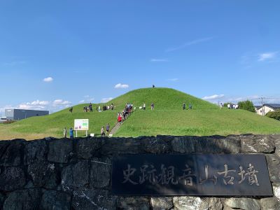 バスに乗って、観音山古墳に到着しました。観音山古墳は、前方後円墳であり、剣や冠、埴輪などが3000点以上出土し、国宝に指定されていることを学びました。古墳に登り、石室にも入って、貴重な体験ができました。