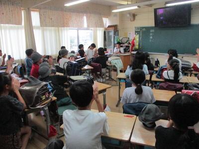 今日は今年度初めての土曜公開授業・セーフティー教室でした。子どもたちは保護者の方が来るのを楽しみにしているようで、普段よりちょっと緊張した感じで授業を受けていました。暑い中ではありましたが、多くの保護者の方にご来校いただき、感謝いたします。今日の授業の様子について子どもたちの頑張りをご家庭でほめていただければ…と思います。