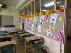 今1年生は給食を食べたあと、帰りの会をして帰ります。方面ごとにまとまって帰りますので、グループごとに出発時間は少し違います。その間は教室にいます。その時間、今は6年生が工夫しながら1年生の教室のお掃除をしてくれます。1年生がお掃除を始めるのはもう少し経ってからです。待っている1年生はとても落ち着いています。昨日は待っている1年生に「給食のカレーおいしかった?」と私が聞くと「おいしかった!」という返事と共に「みかんゼリーもおいしかった」と話してくれました。また、折り紙など作った作品も見せてくれます。あるクラスでは、図工で作った作品を紹介してくれました。