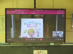 今朝はタブレット端末で教室と職員室をつないで全校朝会をしました。現在、全校児童が集まっての活動は見合わせています。登校時には昇降口で密にならないよう意識していますが、朝会終了時はどうしても昇降口が混みあいます。これらを避けるためです。