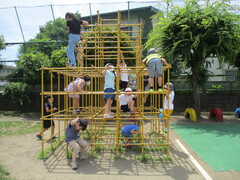 7月29日に緑のカーテンのことをご紹介しましたが、およそ10日で写真のように3階に到達しました。この時期の植物は本当に成長が早いです。夏休みの子どもたちも元気に、様々な経験をしながらすくすくと成長しているかなと想像をしています。