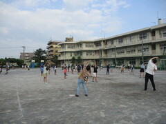 今日は私も参加しました。副校長と会場が一つで3年ぶりだからどれだけ子どもたちが集まるかな?と話をしていたのですが、校庭には子ども、大人で約80人が集まりました。6時30分にラジオを流して生放送でラジオ体操を行いました。子どもたちの前で育成会の方々や卒業生が手本でラジオ体操をしてくれました。子どもたちも久しぶりだとは思いますが、順番を思い出しながらラジオ体操に取り組みました。このラジオ体操ですが、指示の通り体をしっかり動かすと、なかなかきつい運動です。1日のスタートに際して体を動かすにはよい運動です。校庭は十分な広さがあります。密を避けて子どもたちは思い思いの場所でラジオ体操ができました。