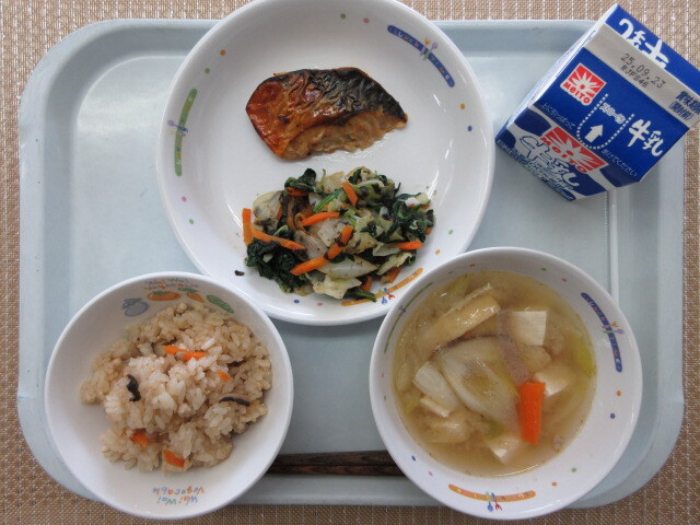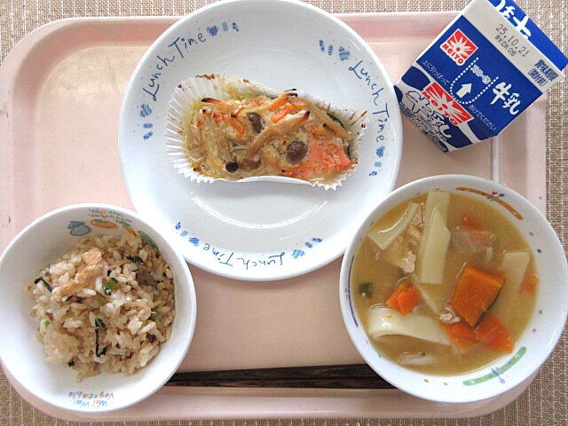 鮭ときのこの具沢山汁 牛乳