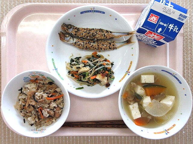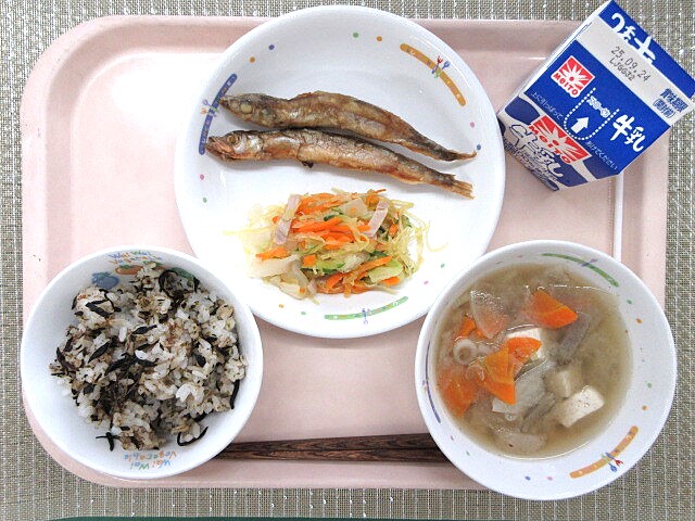 おかかとひじきのごはん ししゃものレモン唐揚げ