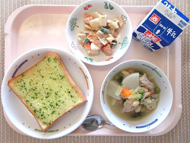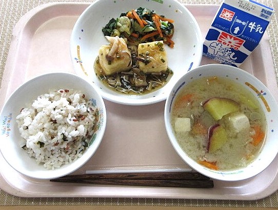 磯部和え さつま汁 牛乳