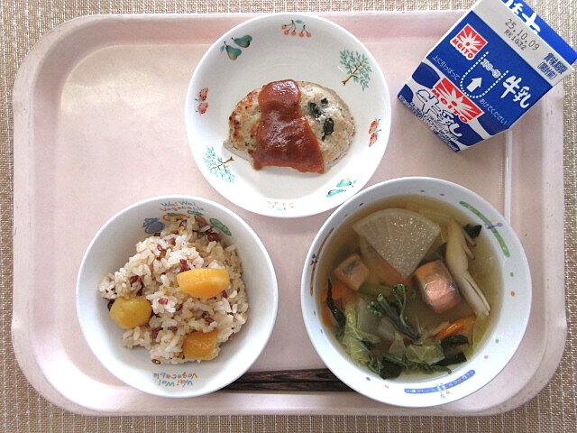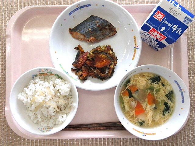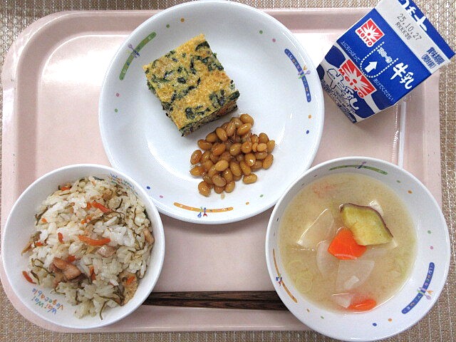 ほうれん草のおひたし かぼちゃ豚汁 牛乳