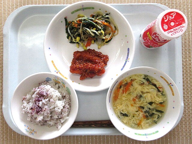 ゆかりごはん ヤンニョムチキン にらとのりのナムル