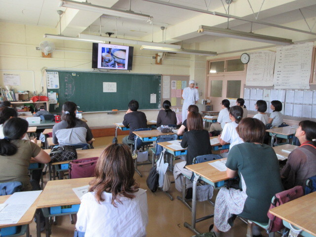 試食の後に、栄養士・調理師より保谷第一小学校の給食についてお話をさせていただきました。