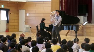 生演奏を聴くのが初めての児童もいたので、とても感激している様子でした。「ルパン3世」や「ディズニーメドレー」など、お馴染みの曲を中心に、ユーフォニアムとピアノの素敵なハーモニーにとても魅了されました。曲に合わせて歌ったり踊ったりと、寒さを忘れるほど楽しい時間を過ごすことができました。