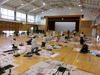 1月13日火曜日、書家の先生をお招きして、体育館で席書会を行いました。