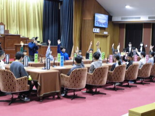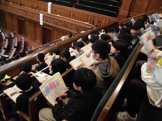国会議事堂では、参議院体験プログラムに参加し、他の小学校と中学校の皆さんと一緒に、