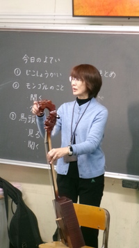 国語では今『スーホの白い馬」を学んでいます。先生にお話に出てくる珍しい馬頭琴を見せていただいて、モンゴルについても勉強しました。本物の馬頭琴の音はとても大きく響き、びっくりしていた児童もいました。